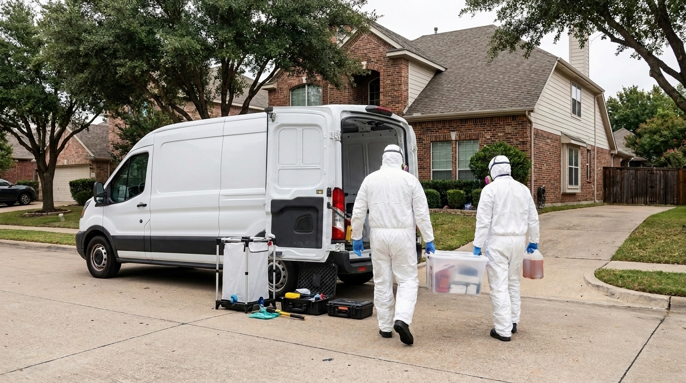 Our crime scene cleanup technicians remove blood, biological material, and other hazardous residue from homes and commercial properties in Plano. We work directly with law enforcement and emergency responders to gain access and begin remediation as quickly as possible. Every affected surface is treated, sanitized, and tested to meet Texas Department of State Health Services standards.